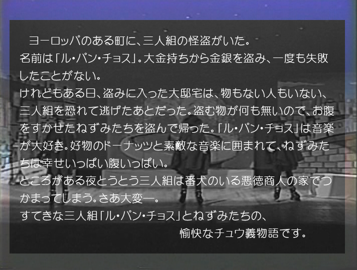ここは、商いで賑わう町。大小の店が軒を連ね、町人たちが陽気に挨拶を交わす。団子屋のあんこは、実は岡っ引き。お人よしのオッチョコチョイで、犯人をとりにがすは、まちがえるは…
