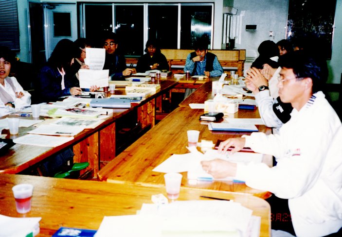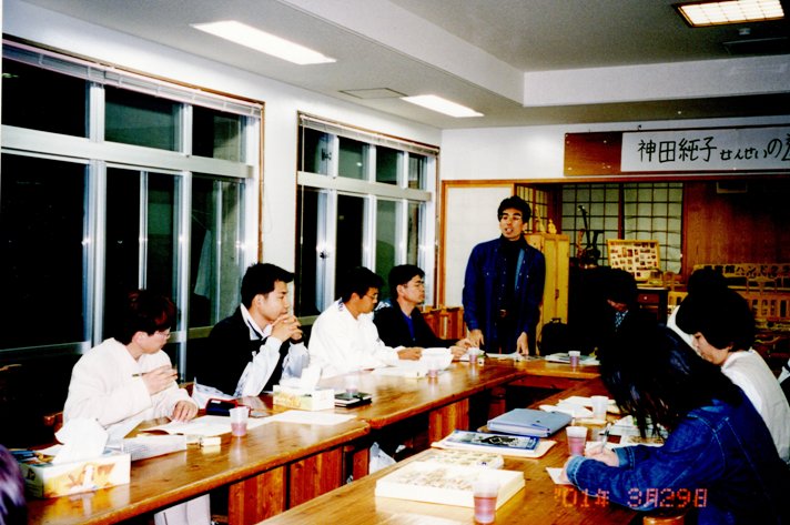 当時は、お二人とも支援学校の教員をしながら、グループホームと「太陽クラブ」という知的障がい者の余暇サークルを運営されていた。すごい行動力だった。「とにかく観てほしかった。」という地井さんを中心にした実行委員会の涙ぐましい奮闘で、15 0 0名収容の小松市公会堂を満席にして、公演は大成功に終わった。翌日はまだ雪の残るゲレンデでのソリすべりに、団員は大はしやぎ一。楽しい思い出となっている。以来、ずっとチャンチャン劇団を応援し、年末の定期公演に何度かグループホームのメンバーと共に訪れてくださった。「あなた方はすばらしい。」という劇団への揺るぎない信頼に、我々スタッフは、どんなに支えられ励まされたことか。