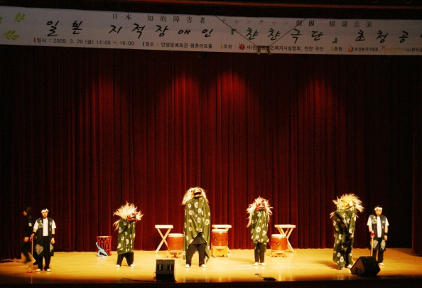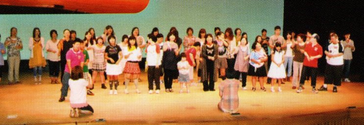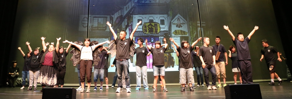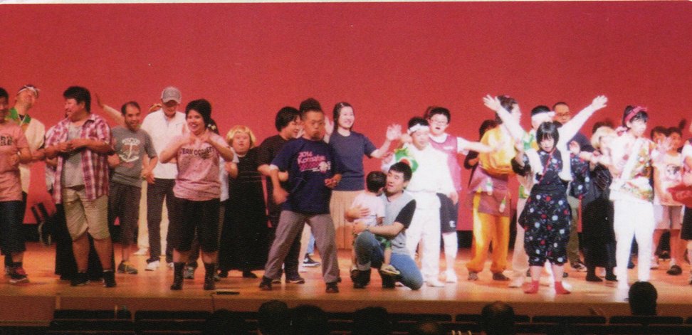 でも、誰を頼りに熊本県を訪れたらいいだろう…。5年程前に、チャンチャン劇団のホームページを見て関心を持ち、出張の合間に練習を見に来たという「サンシャインワークス」副施設長の岡崎誠子氏のことを思い出した。チャンチャンの事を覚えているか、不安な気持ちで連絡を入れてみると、「あれから、うちの施設にもスマイル劇団が誕生しました。」と快く熊本公演の実現に向けて、協力を約束してくださった。熊本市中心部の公演会場の多くが復旧作業中であり、会場探にこ苦労していたところ、植木文化ホールを紹介していただきやっと公演の場所を決めることができた。