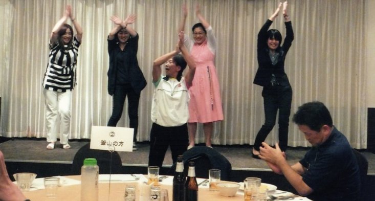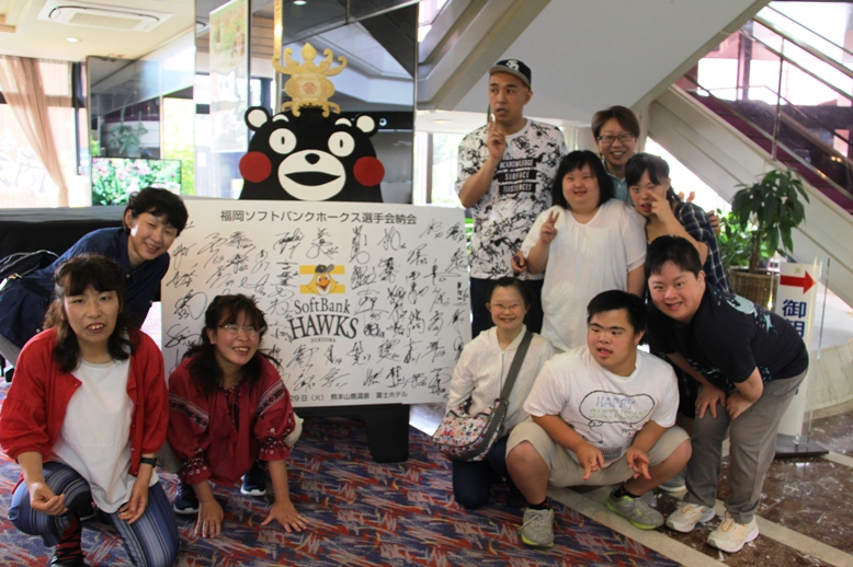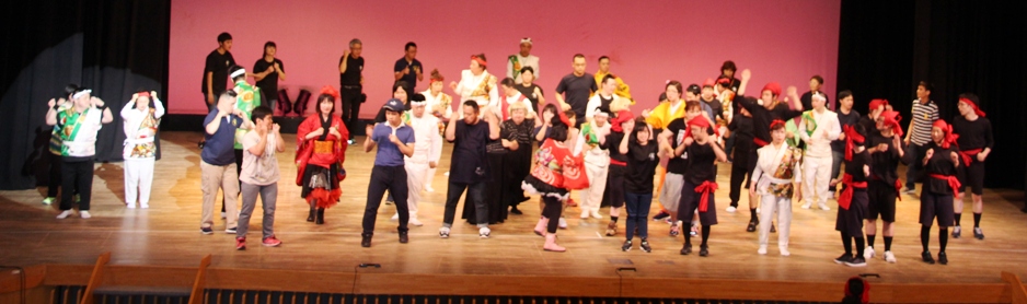 10か月あまりの短い取組み期間ではあったが、当日は、スマイル劇団さんの友情出演で盛り上がり会場は温かい雰囲気に包まれた。「来年は、何月にするの?」「楽しかった。毎年、福岡と熊本でしたらいいね。」と嬉しい感想もいただいた。これからもぜひ交流を続けたい。公演後の夜は、山鹿温泉で乾杯!恒例の親やスタッフの出し物で盛り上がり、次の日は、観光と名産の西瓜や馬刺しのお土産をたくさん買って、充実感と共に、楽しいひとときを過ごす事ができた熊本公演ツアーだった。