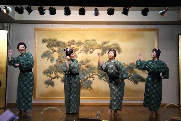 公演前日に小松空港に降り立った総勢72名の一行を、地井さんと共に、小松市の呉服屋さん「華友禅 菊屋」のご主人が、100個もの大福餅を持って迎えてくださった。その、とても美味しい大福餅をほおばりながら、一行は能登観光に向かった。御陣乗太鼓の迫力に圧倒され、能登の海の幸を堪能した。その後も金沢や山中温泉郷等を周り、石川を満喫した。公演後の打ち上げでは、恒例の親やスタッフの出し物で盛り上がり、充実感と共に、楽しいひとときを過ごす事ができた石川公演ツアーだった。